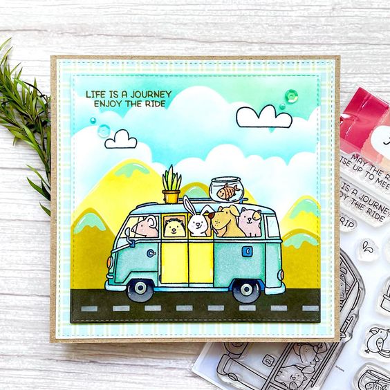What a great hop surprise for you Jane. All these cards are so cute and sweet I just love the "Road Trip" stamp set. I like how you can put things on top of the van in different ways, like the fish bowl. Just don't hit the breaks too quick! I am looking forward to it coming in again so I can grab it. I will not be able to hop on Instagram, but thanks for showing the hop cards. You Insta guys have fun!